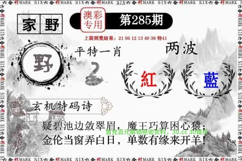 285期:单双两肖【双肖+猪牛】开:马24准 |